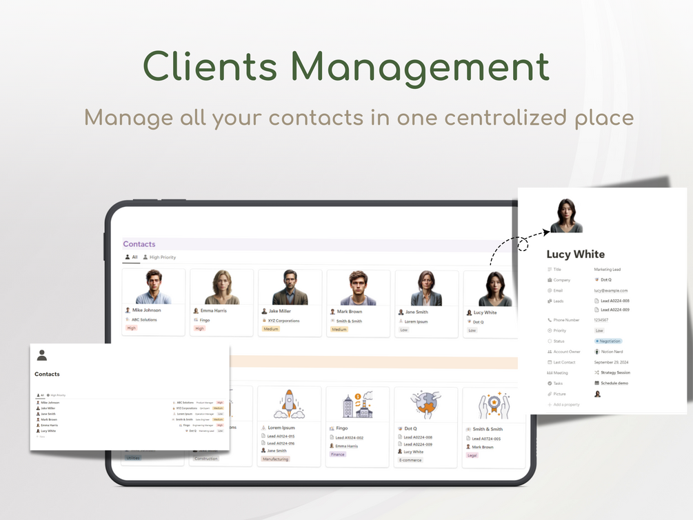 Keep your entire sales pipeline in check with a dedicated Leads section. Track all your leads in one place, from initial contact to closing the deal. Whether you’re pursuing a new prospect or following up with long-term clients, this system keeps everything organized. Set priority levels and monitor conversions in real time and master pipeline management.