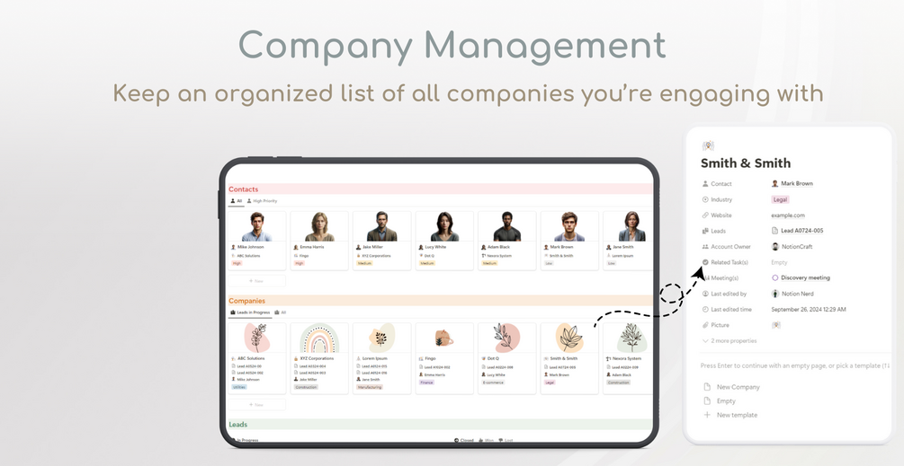 The Quick Add feature allows you to instantly add new contacts, companies, tasks, or meetings in just a few clicks. This streamlined process reduces manual entry time, ensuring that your workspace remains up-to-date without any hassle.