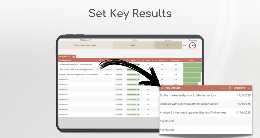 With our Google Sheets OKR template for small businesses, you can: